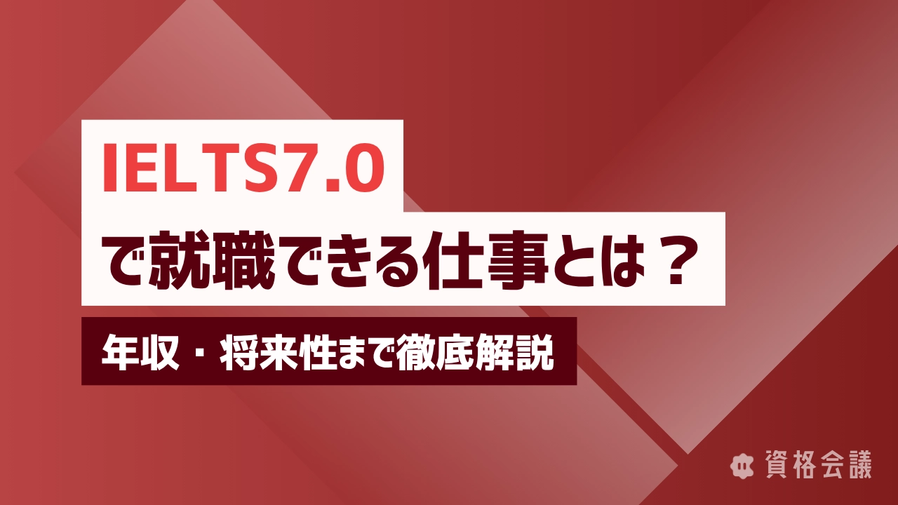TAG 民間資格 IELTS7.0で就職できる仕事とは?年収・将来性まで徹底解説 2026.04.06 IELTS Nishida 資格会議メディア IELTS 6.5で就職できる仕事とは?年収・将来性まで徹底解説 2026.04.06 IELTS Nishida 資格会議メディア IELTS 5.5で就職できる仕事とは?年収・将来性まで徹底解説 2026.04.06 IELTS Nishida 資格会議メディア IELTS 5.0で就職できる仕事とは?年収・将来性まで徹底解説 2026.04.06 IELTS Nishida 資格会議メディア TOEIC990点で就職できる仕事とは?年収・将来性まで徹底解説 2026.04.05 TOEIC Nishida 資格会議メディア TOEIC900点で就職できる仕事とは?年収・将来性まで徹底解説 2026.04.05 TOEIC Nishida 資格会議メディア TOEIC800点で就職できる仕事とは?年収・将来性まで徹底解説 2026.04.05 TOEIC Nishida 資格会議メディア TOEIC700点で就職できる仕事とは?年収・将来性まで徹底解説 2026.04.05 TOEIC Nishida 資格会議メディア TOEIC600点で就職できる仕事とは?年収・将来性まで徹底解説 2026.04.05 TOEIC Nishida 資格会議メディア TOEIC500点で就職できる仕事とは?年収・将来性まで徹底解 2026.04.05 TOEIC Nishida 資格会議メディア もっと見る